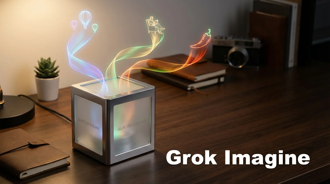 xAI's Aurora-powered visual AI for image generation and video creation with Fun, Normal, and Spicy creative modes.