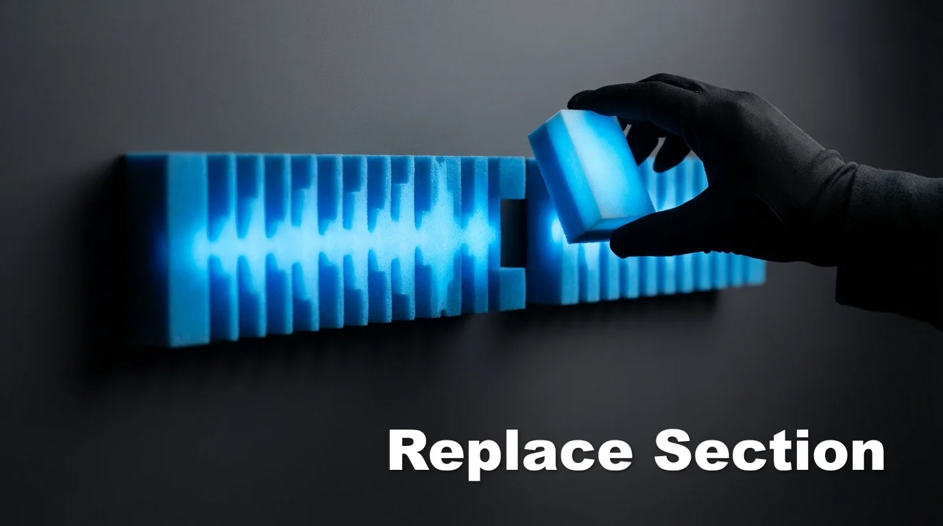 Replace specific sections of generated music tracks with precision timing control. Modify choruses, verses, or any segment by specifying start and end times. Maintains overall coherence while allowing targeted changes to lyrics, style, or musical elements.