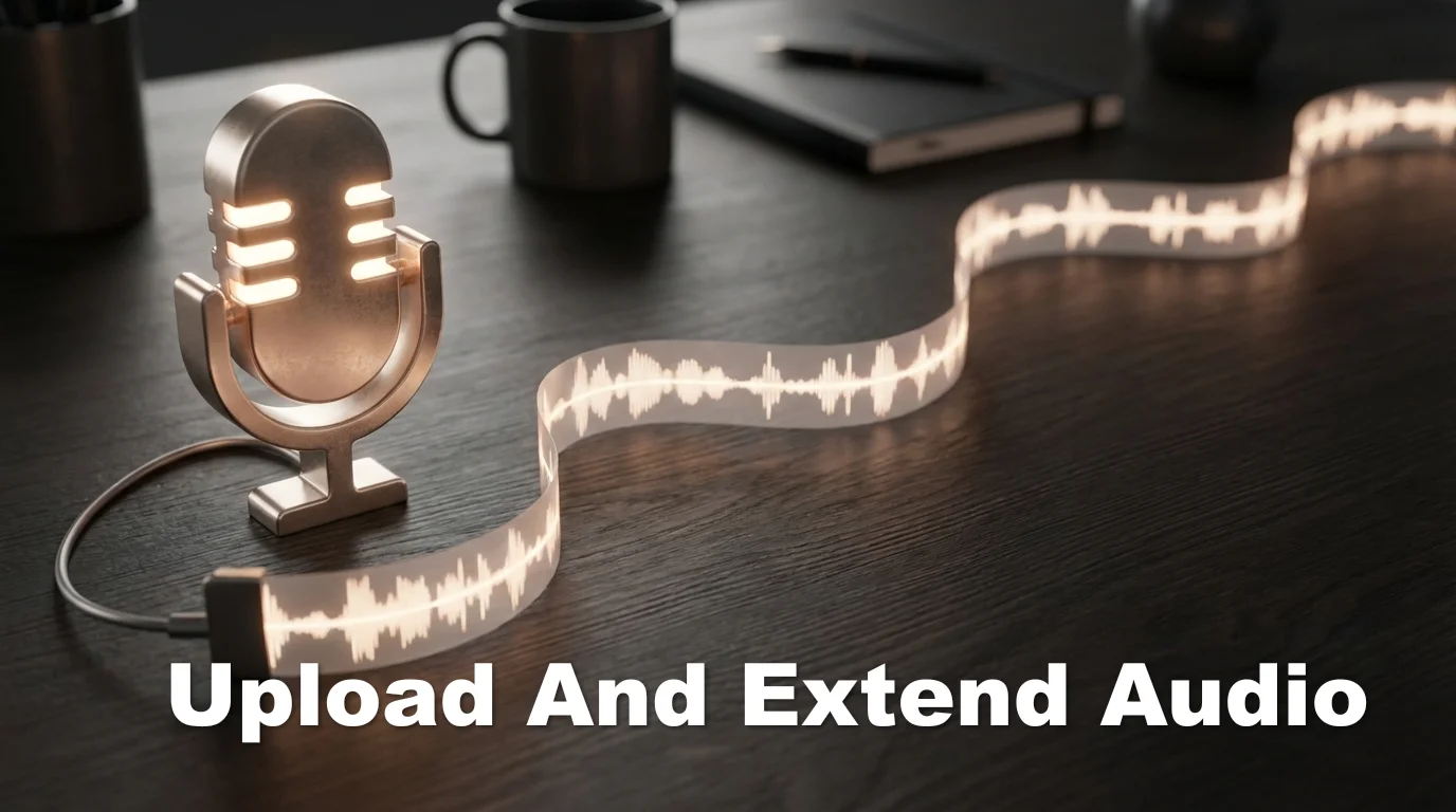 Upload audio files and extend them while maintaining the original style and characteristics. AI generates seamless continuations from specified time points. Supports multiple model versions with style weight and creative controls for natural extensions.