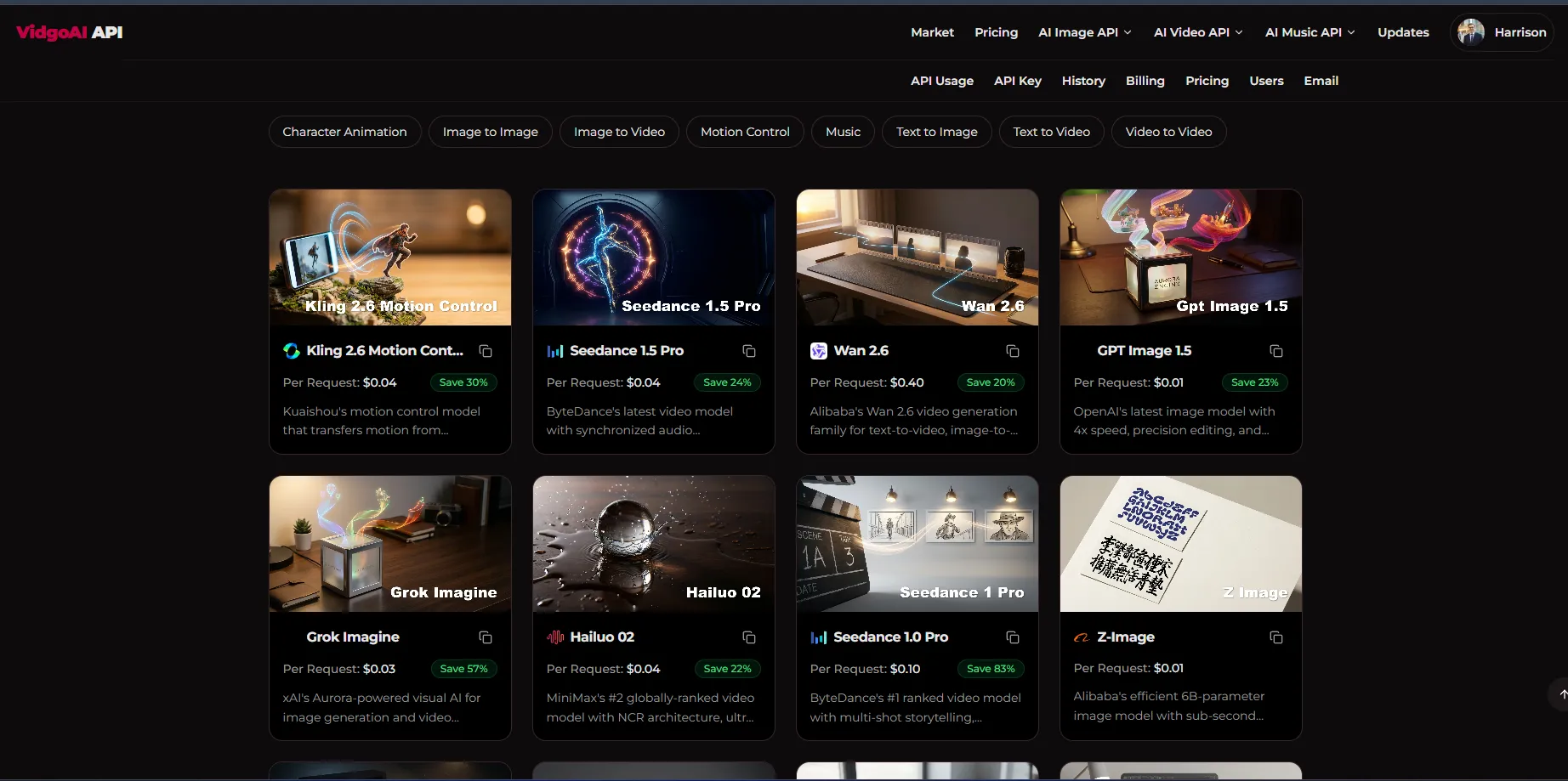 Vidgo API solves these problems by offering a unified platform that provides access to 30+ leading AI models through a single API key—at prices 80-95% lower than competitors like fal.ai and Replicate.